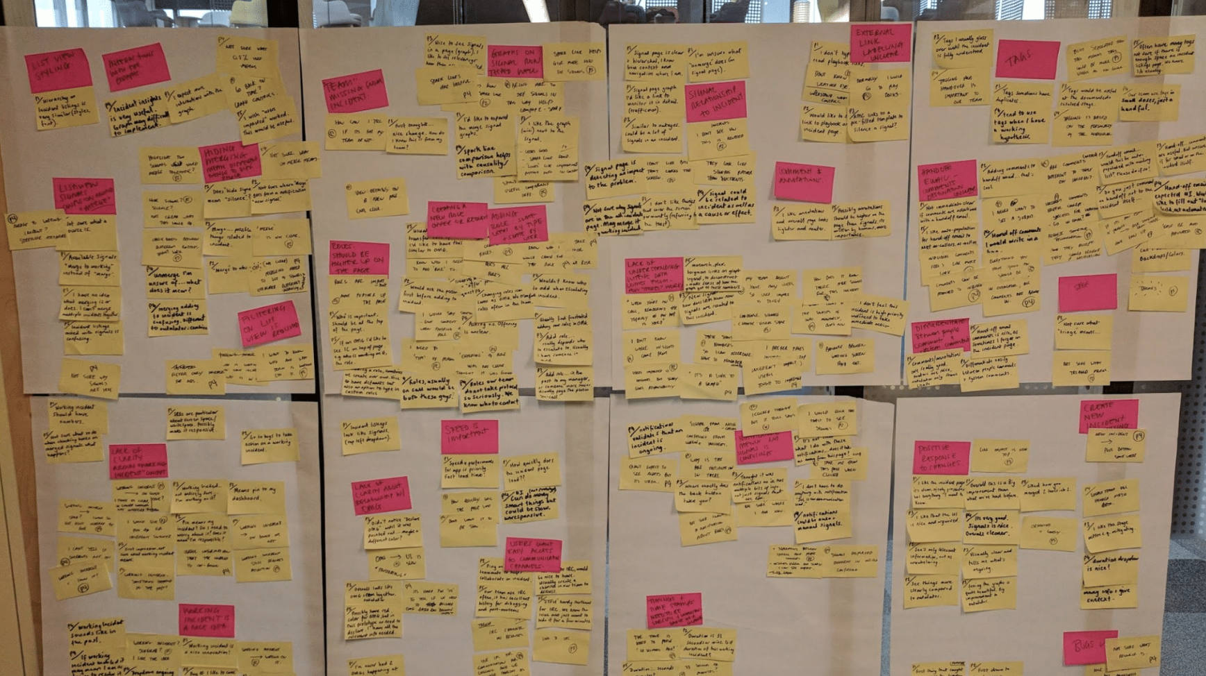 After every user testing cycle, the team would get together to affinity sort the findings.