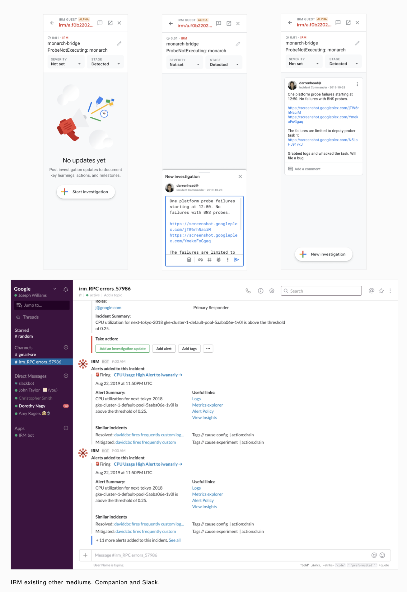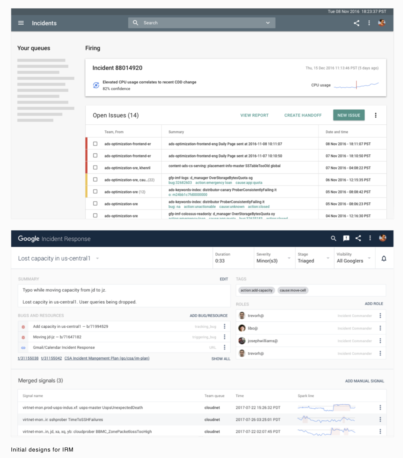 Google's incident response tools lacked design cohesion and cross product integration. This required context shifts and sustained cognitive load during stressful scenarios for the engineers responding to the incident. IRM replaced and combined the collection of tools previously used and unified the incident triage process.