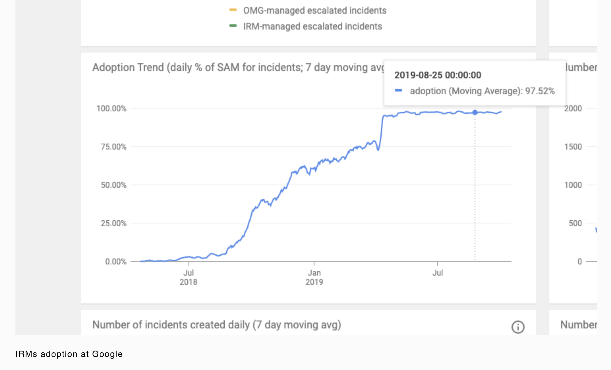 I worked on IRM through the entirety of its adoption at Google. Working from 0% to it being the standard tool at Google for incident response. Adoption will never reach true 100% due to issues being resolved before they are seen in IRM.