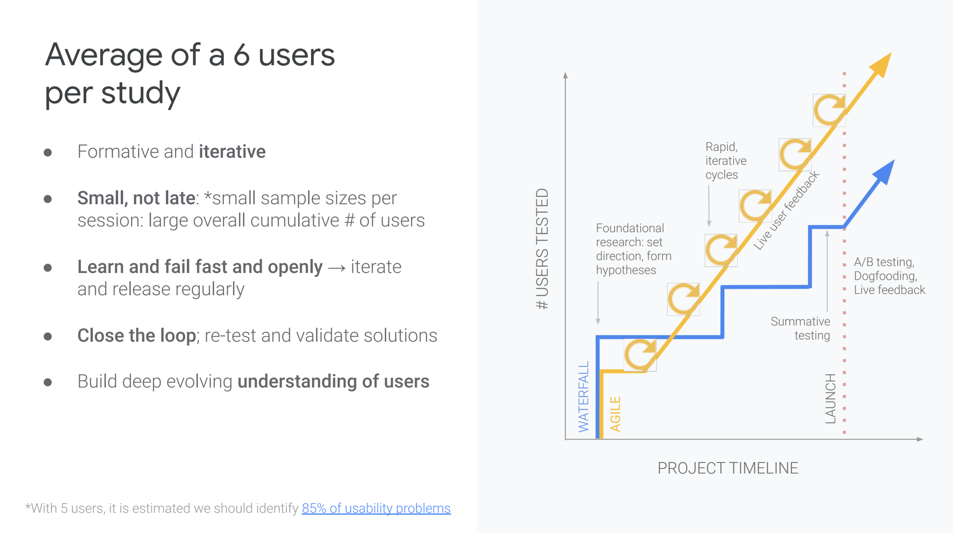 The team focused on rapid iterative test cycles to maximize transparency and to ensure we were building the right tool. This helped keep engineers at Google aware of what we were up to, and involved in the process.