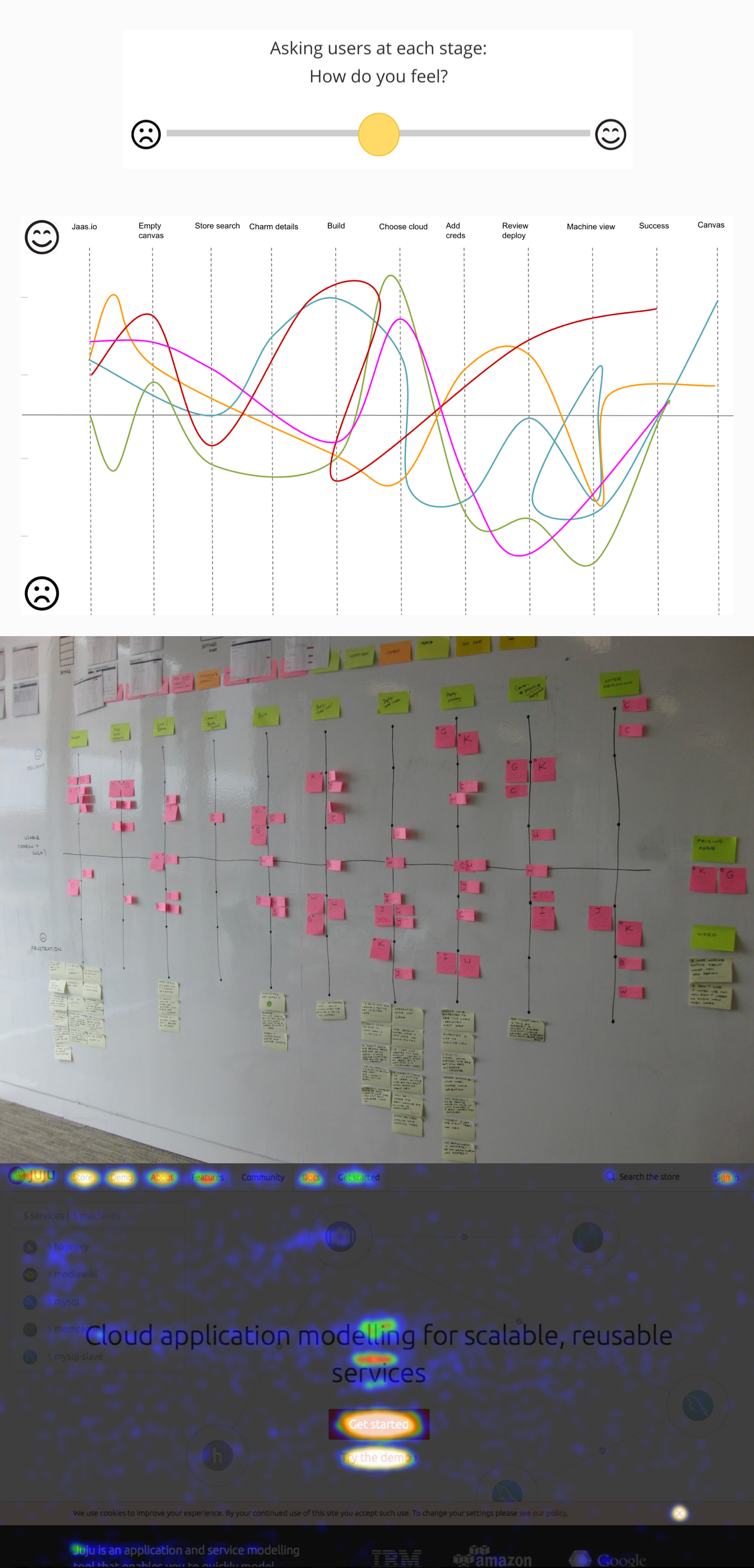 When testing the experience of JAAS, we experimented with also testing user sentiment at each stage of usage. This extra layer of understanding of where the friction was when deploying services with JAAS, and we could map back these findings to the UI.