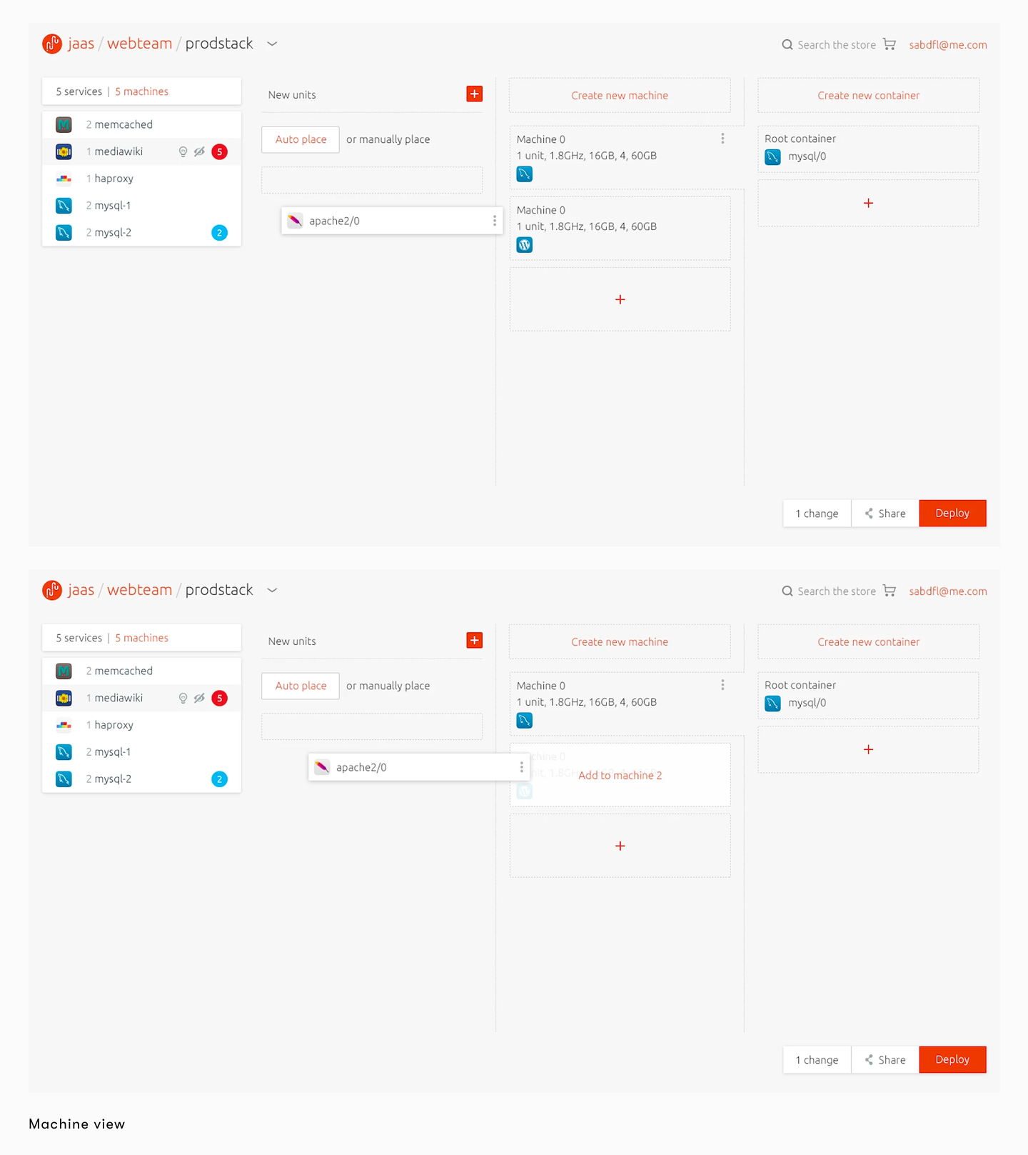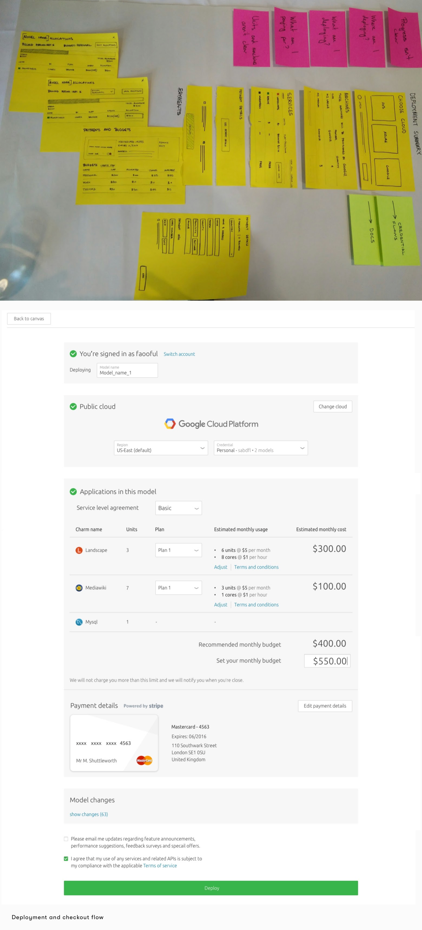 As part of the evolution from Juju to JAAS, this came with a billing flow. The challenge here was clearly showing exactly how much each applications in the canvas would cost, and where that cost was coming from.