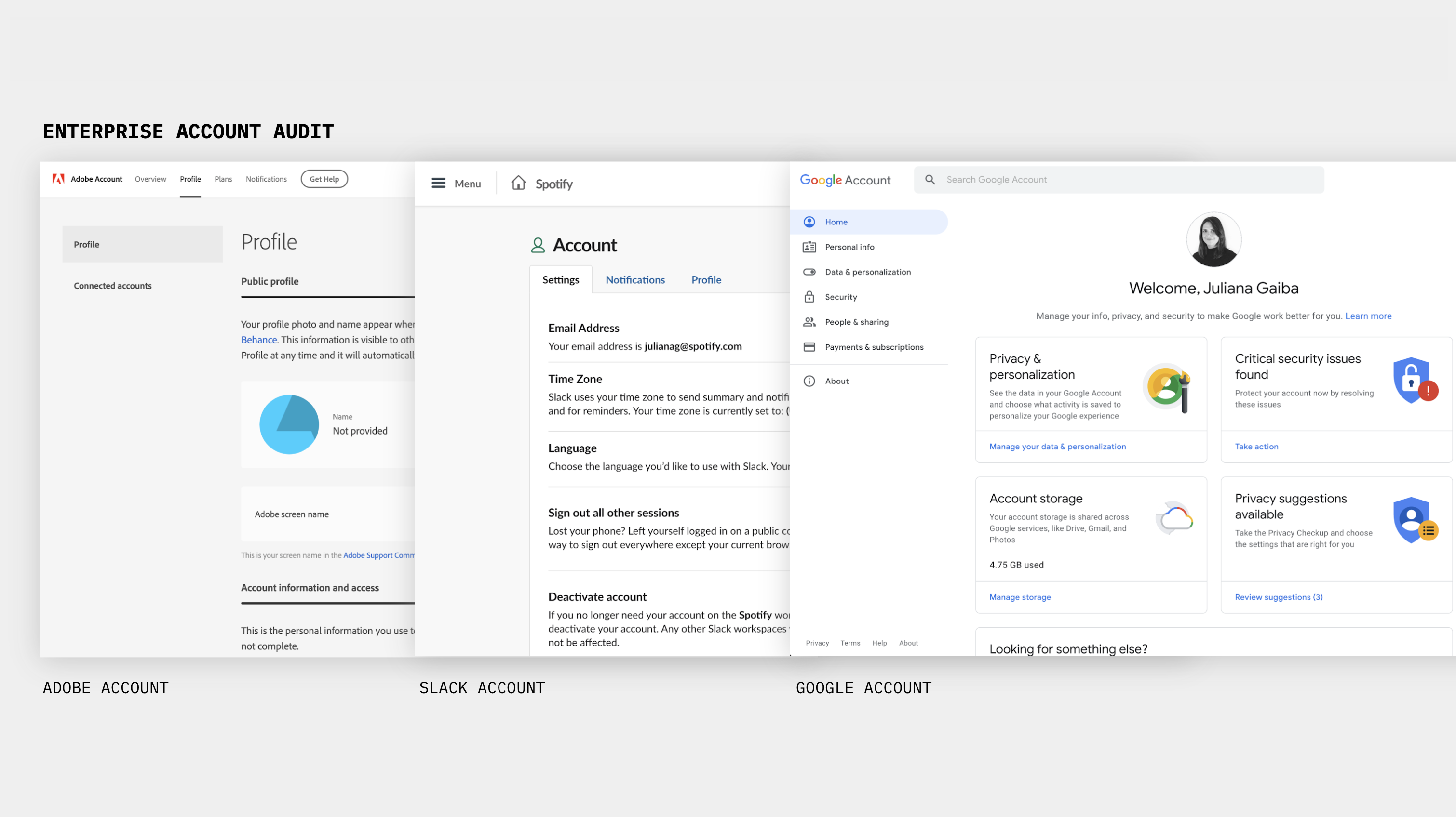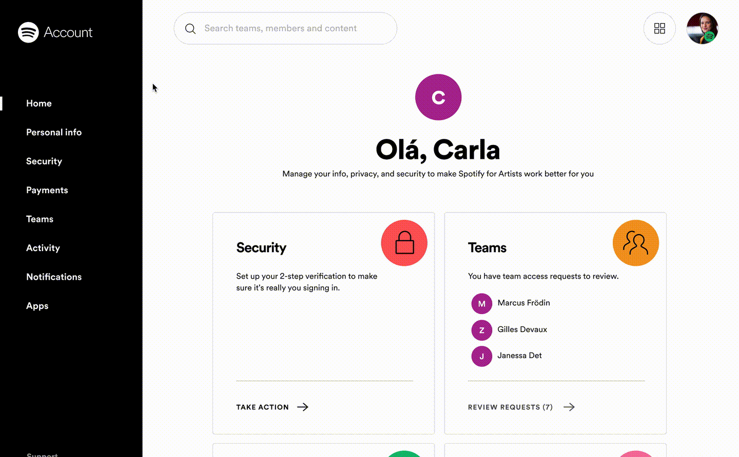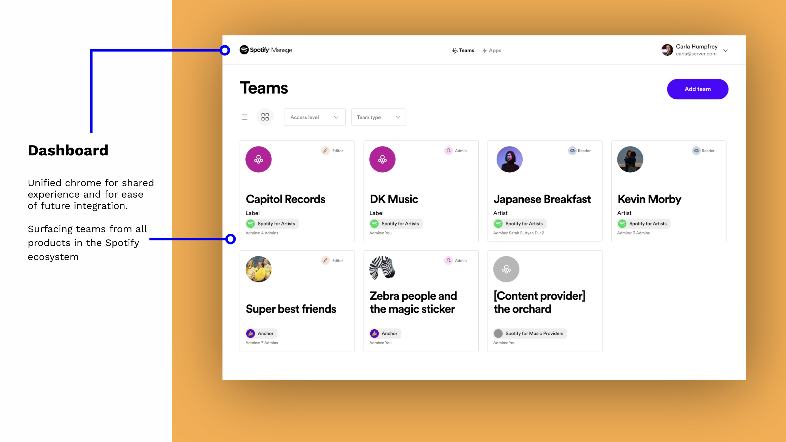 Because we're a platform team targeting enterprise use cases, user accounts, authentication and authorization are important concepts that should be paired with security and identity management. What should a centralized account experience look like?
