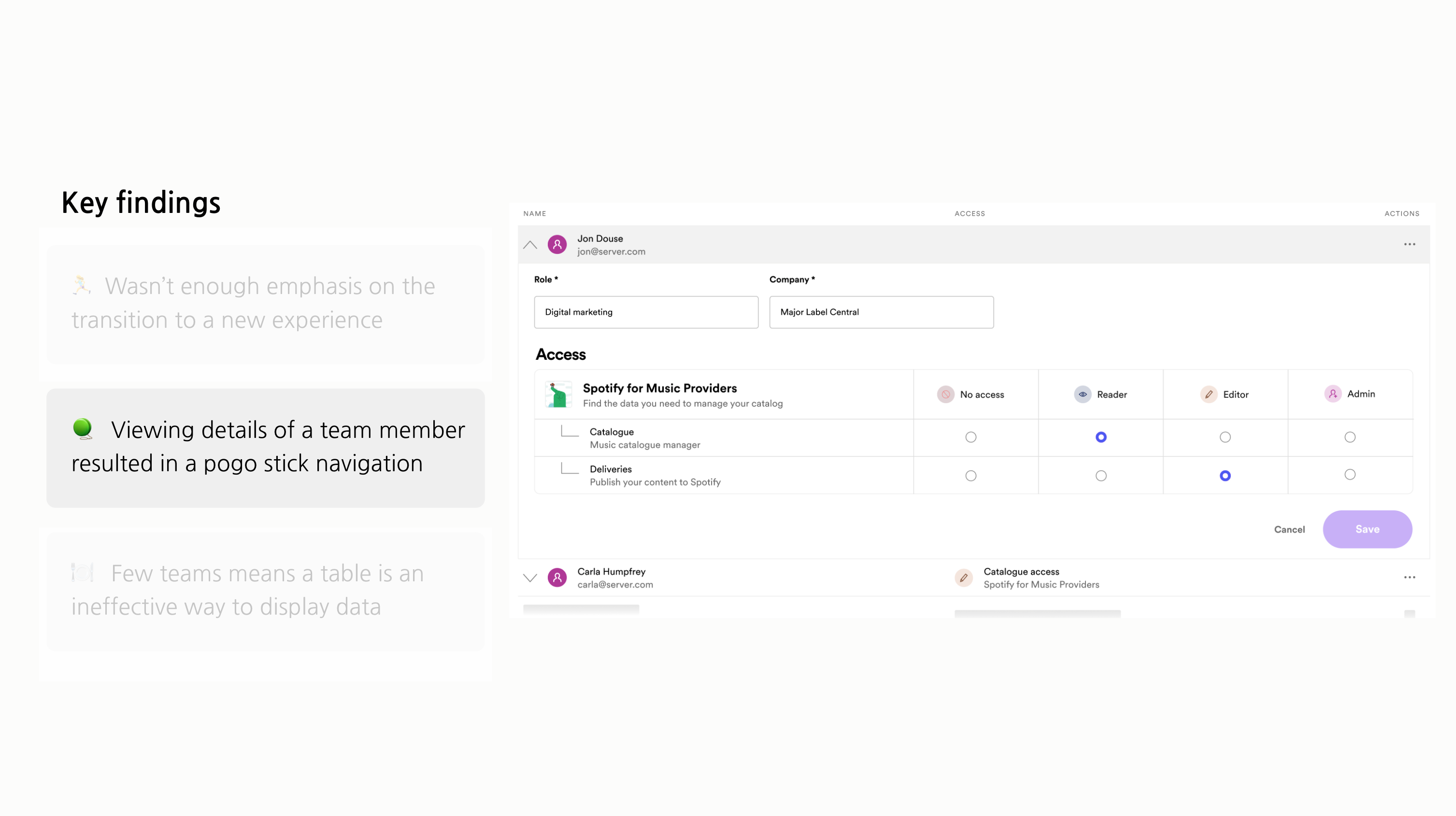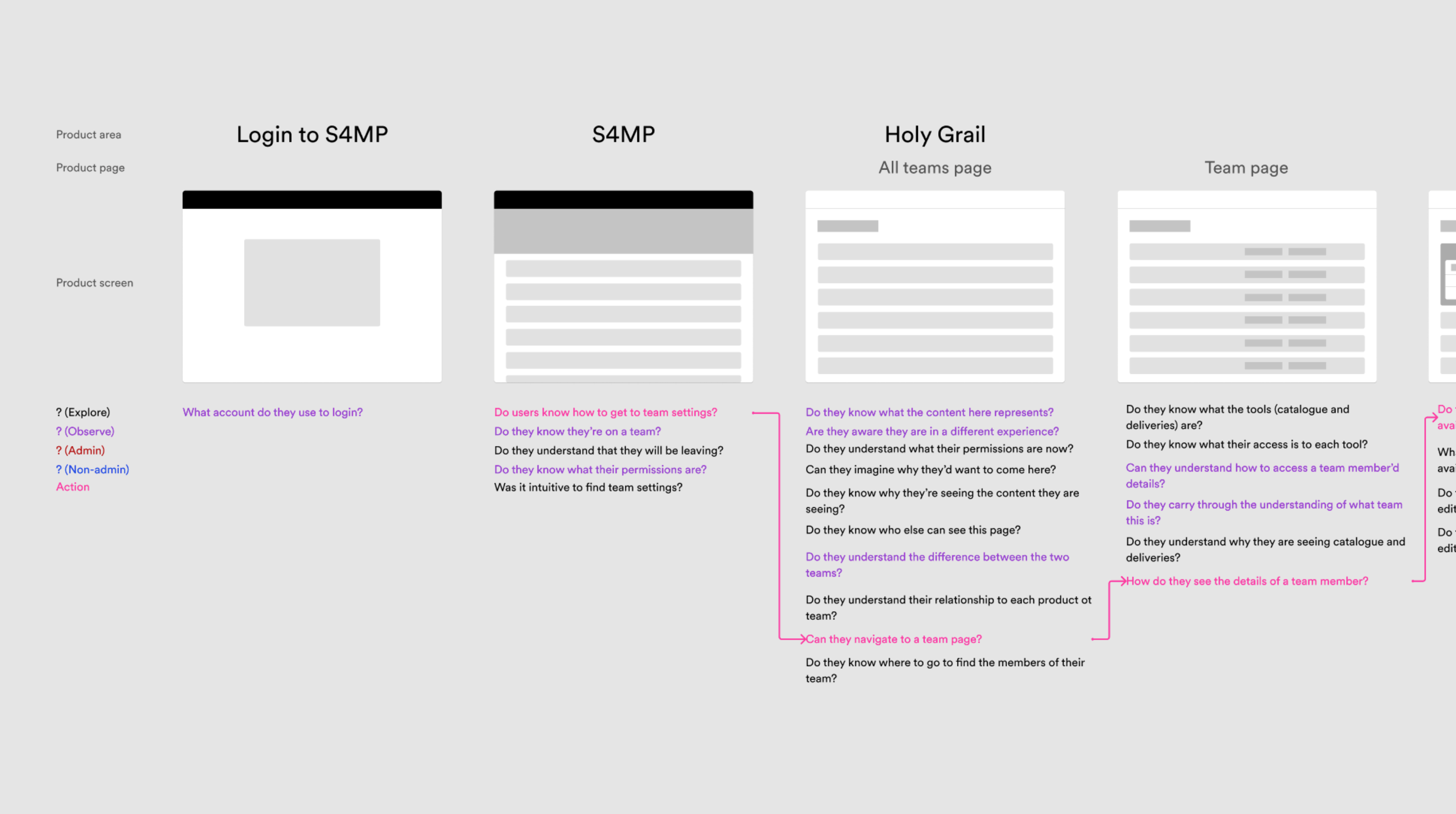 Working with the team focus on where to probe and what we were looking to take away from each screen. Storyboarding split into swimlanes to not bottleneck on hi fi designs. Get into some of the findings from our foundational research after going over what we launched with so there is context around what changed
