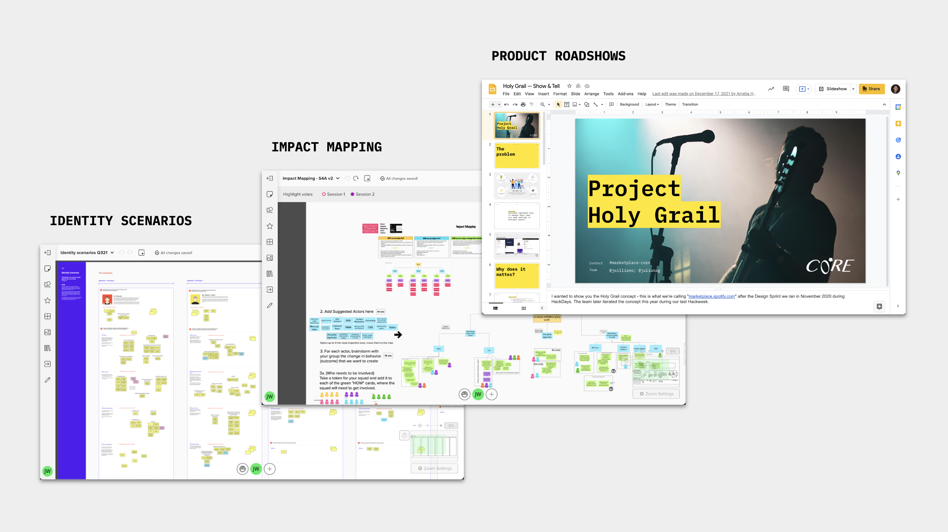 Prototype that was used to illustrate the value but focused on doing everything with a lot of style that exists outside of Spotify. Created a bedrock of sudo wireframes/concept. Code name: Holy Grail